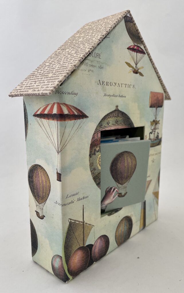 Class Description: This three dimensional house can sit on a shelf or hang on the wall. It has a niche to contain the mini book that we’ll make together in class. You will need 3000 Glue or other heavy-duty glue to make your house.