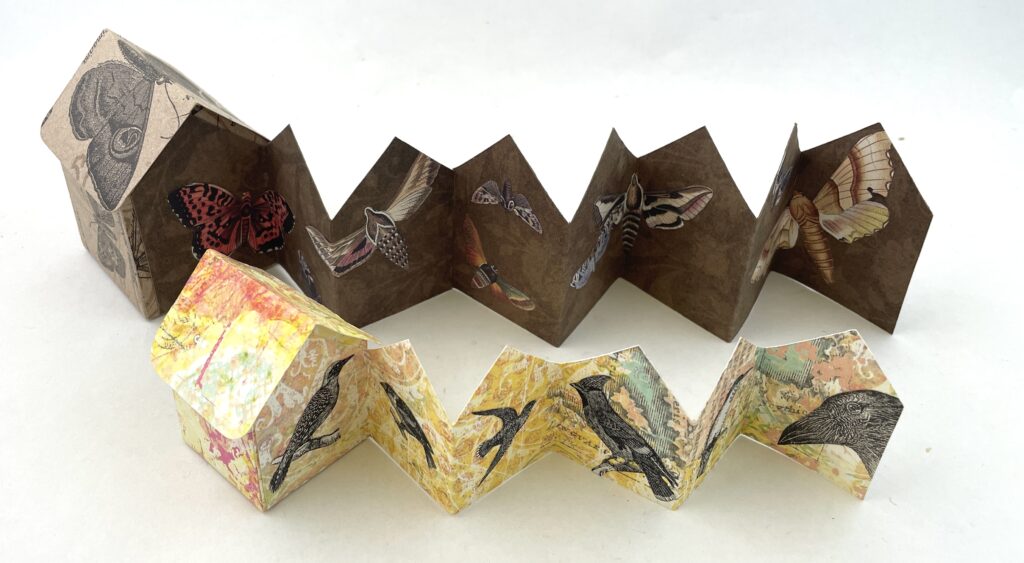 Class Description: Kit will provide two differently sized house templates so you can create a pair of three-dimensional paper houses. We’ll then create mini books to attach to their exteriors and top them off with belly bands. Kit will also share other projects you can make using the templates.